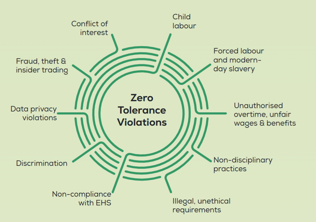 Our Supplier Code of Conduct reflects the high standards we uphold, drawing from customer values, the UN Declaration of Human Rights and key International Labour Organisation (ILO) conventions. We integrate NGO perspectives and set clear expectations where customer sourcing policies are undefined, maintaining a zero-tolerance against violations.